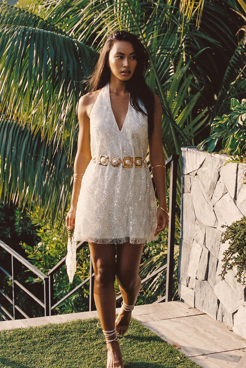 If you're not already wifey, you're about to be in the Izzie White Beaded Mini Dress. Why not live a sparkly life when it's this easy? The beaded and sequined detail adds just enough shine without overwhelming the look. It’s a simple and chic option for family gatherings, wedding dinners, or the bachelorette weekend.