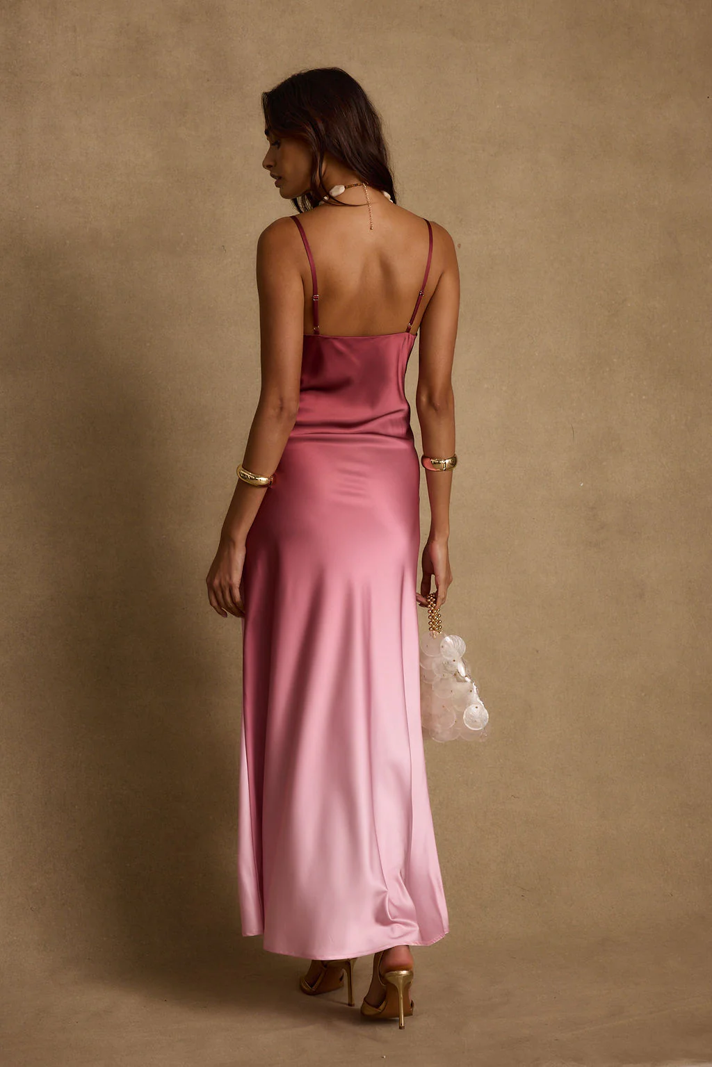 RSVP "yes" as an excuse to wear the Mirabella Mulberry Ombre Maxi Dress, it's such a fun choice for the bride tribe. The flowing satin fabric and ombre raspberry to light pink effect make it feel playful but elegant. It’s also a great option for dinners, beachy plans, or any moment you want to feel dressed up.