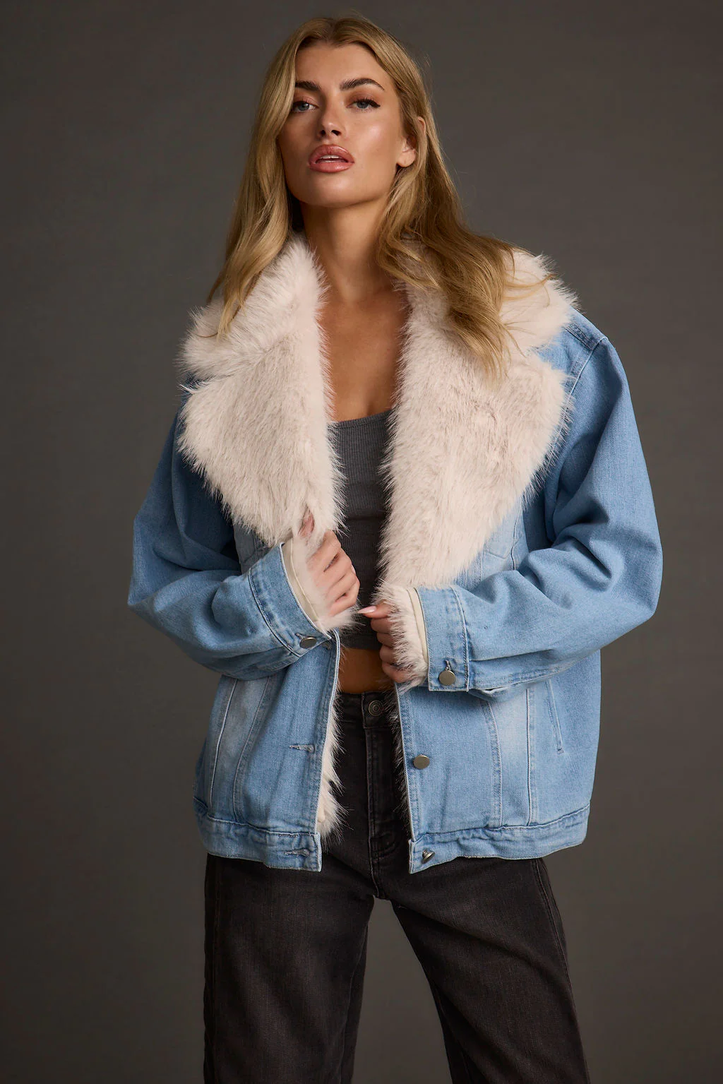 This jacket couldn’t get any cuter. The Rylee Denim Jacket with Faux Fur Trim features detachable faux fur at the cuff and neckline, this jacket is not just cute but also a year-round fashion essential. Whether it's winter layering or a summer dress overlay, the Rylee jacket effortlessly transitions from cozy to chic.